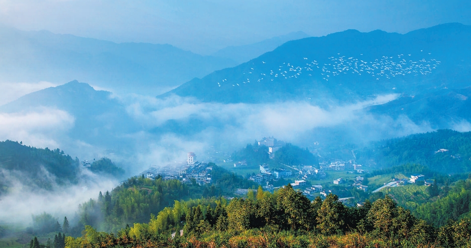 候鸟翱翔在罗霄山脉上空。周建强摄