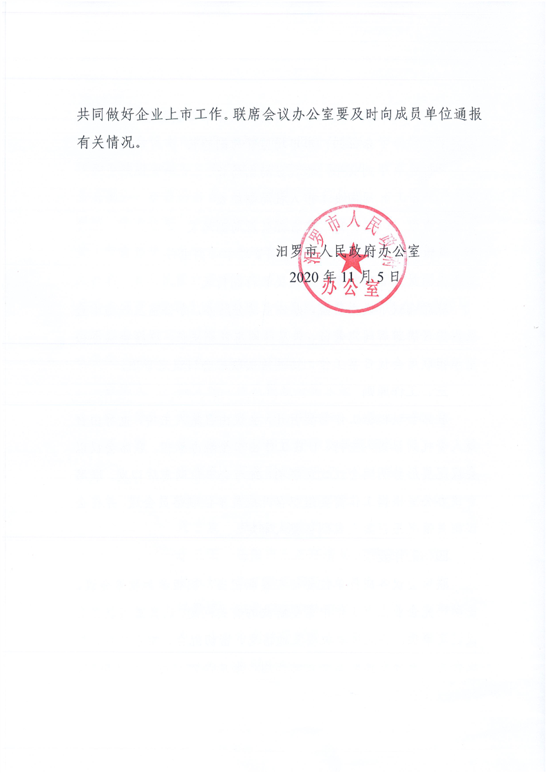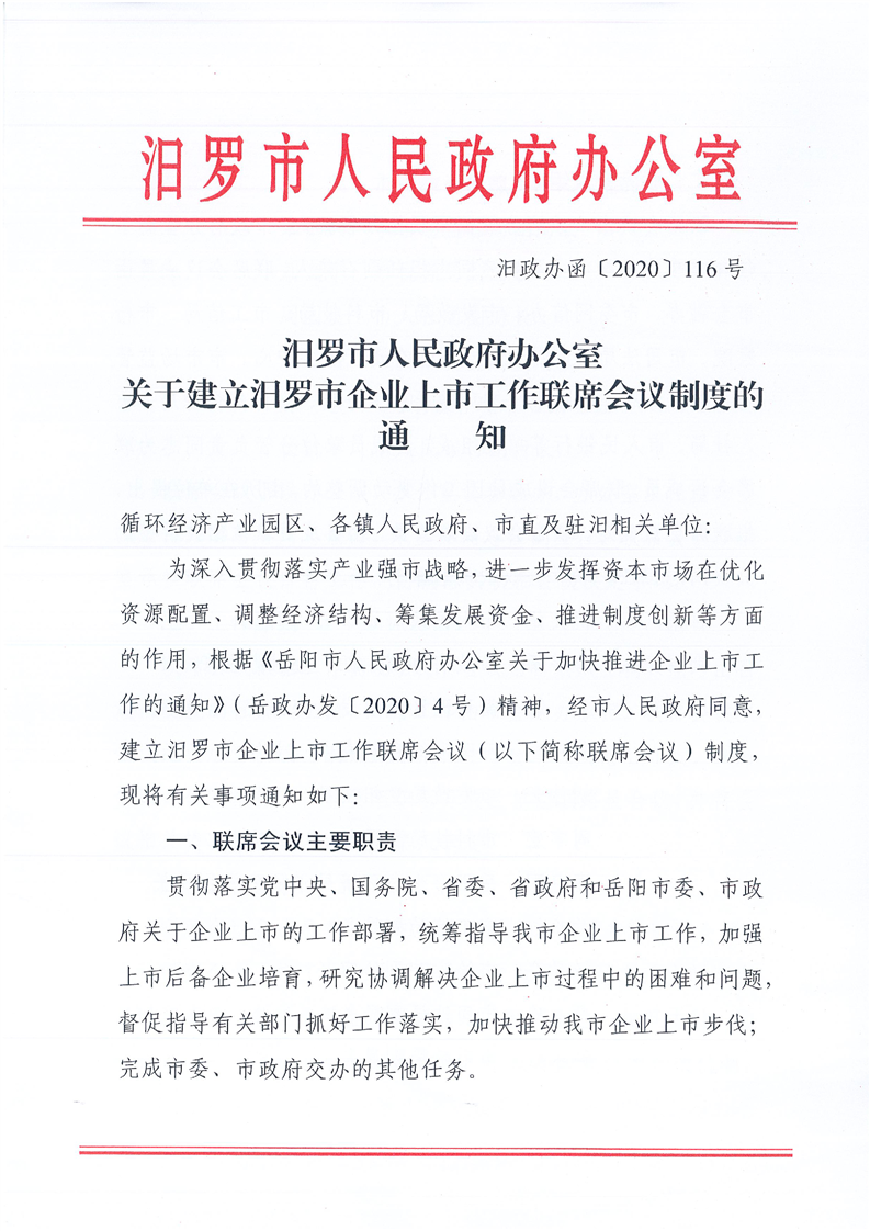 关于建立汨罗市企业上市工作联席会议制度的通知