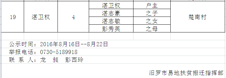 汨罗市易地扶贫搬迁对象甄别公示第一批屈子祠镇
