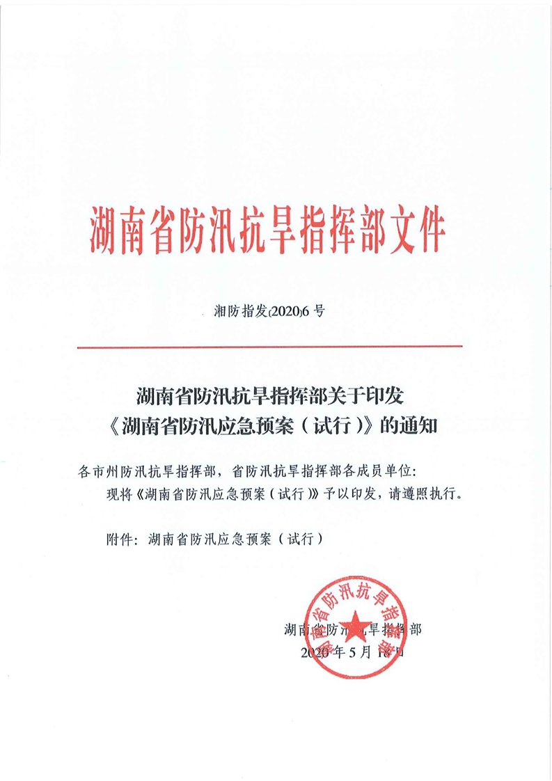 湖南省防汛抗旱指挥部关于印发《湖南省防汛应急预案(试行)》的通知