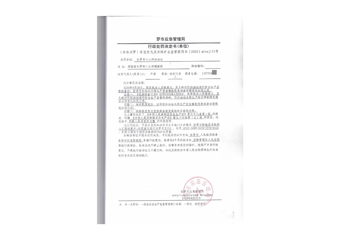 汨罗市川山坪加油站行政处罚决定书 (2)