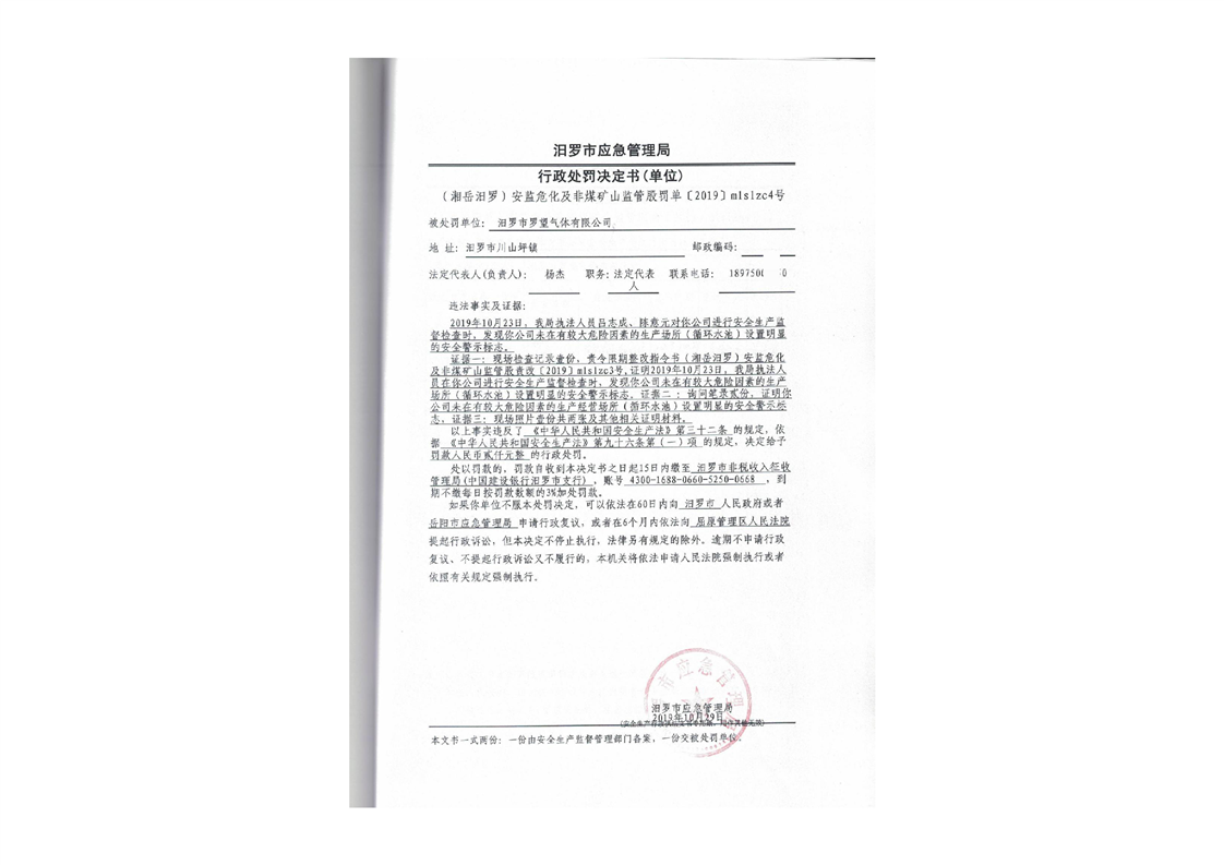 汨罗市罗望气体有限公司行政处罚决定书 (2)