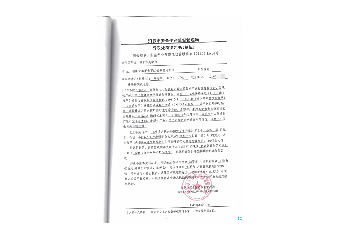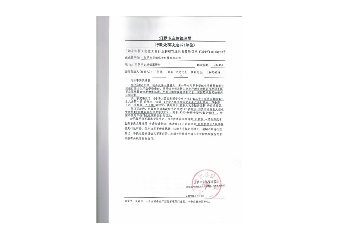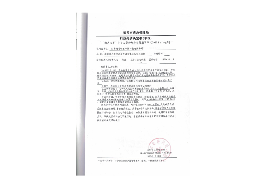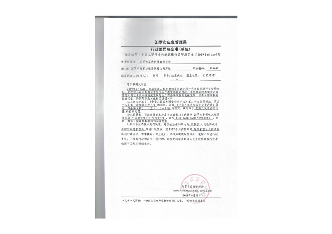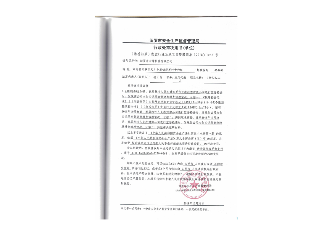 汨罗市天井农机加油站行政处罚决定书