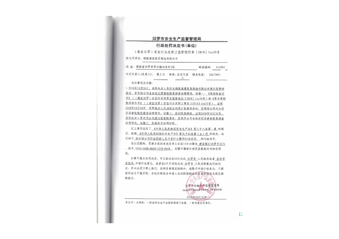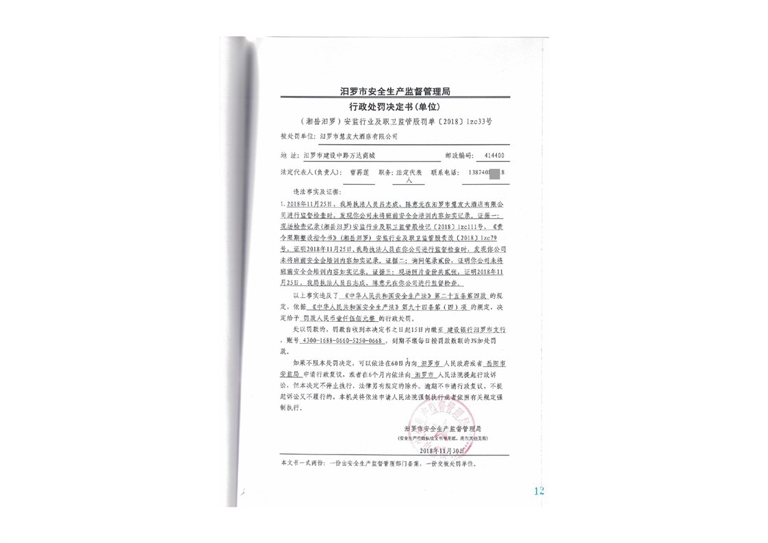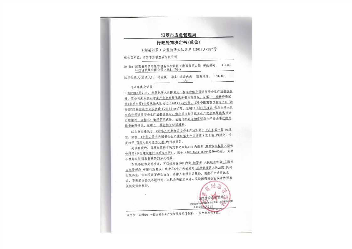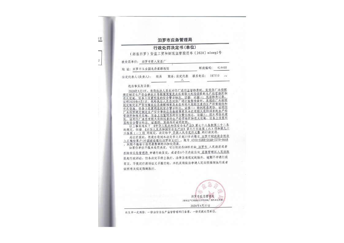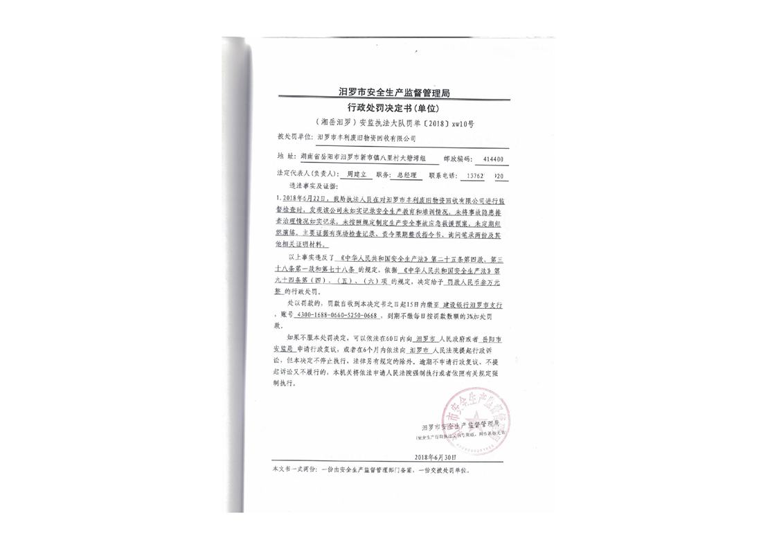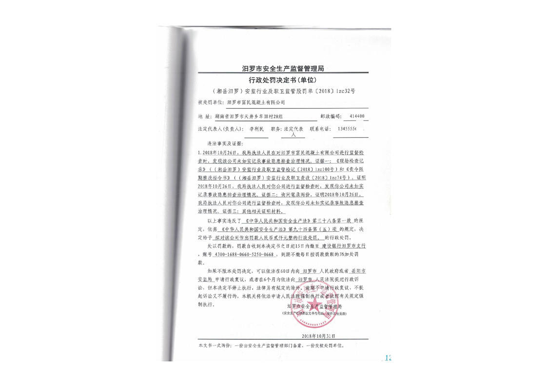 汨罗市天井农机加油站行政处罚决定书