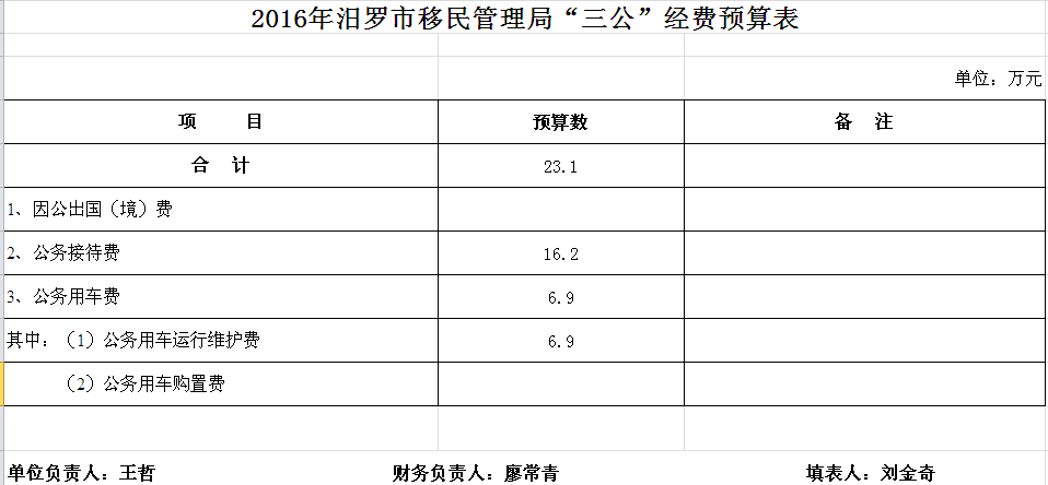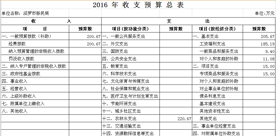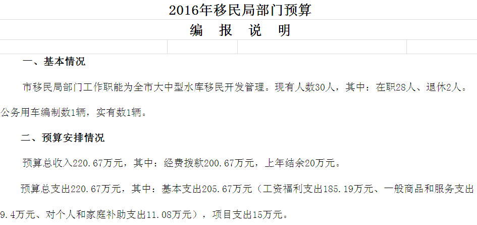 2016年市移民局收支预算总表及“三公”经费预算表