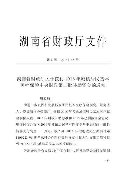 湘财预〔2016〕45号 保险中央财政第二批补助资金的通知