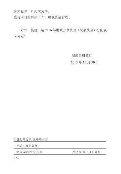 湘财预〔2015〕144号2016年财政扶贫资金(发展资金)的通知
