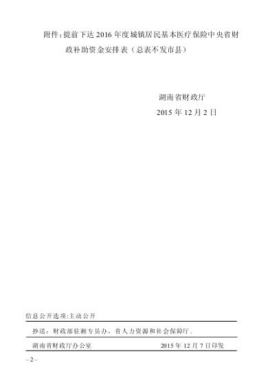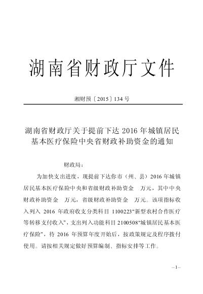 湘财预〔2015〕134号医疗保险中央省财政补助资金的通知
