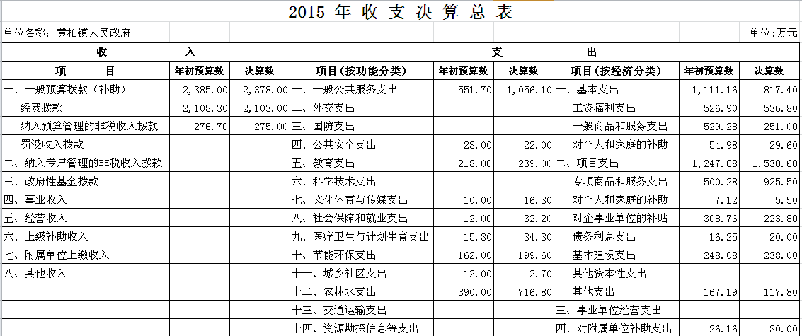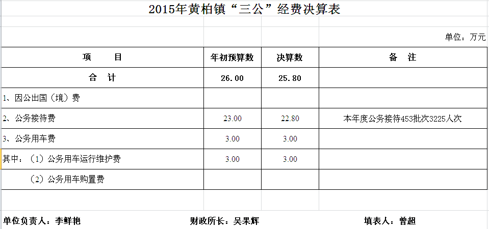 2015年黄柏镇收支决算总表及“三公”经费决算表