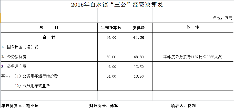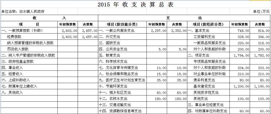 2015年市白水镇收支决算总表及“三公”经费决算表