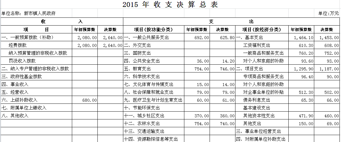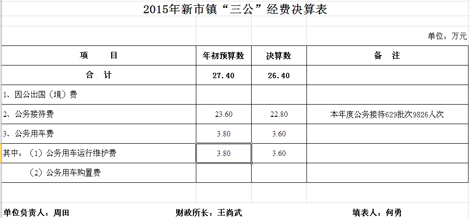 2015年新市镇收支决算总表及“三公”经费决算表