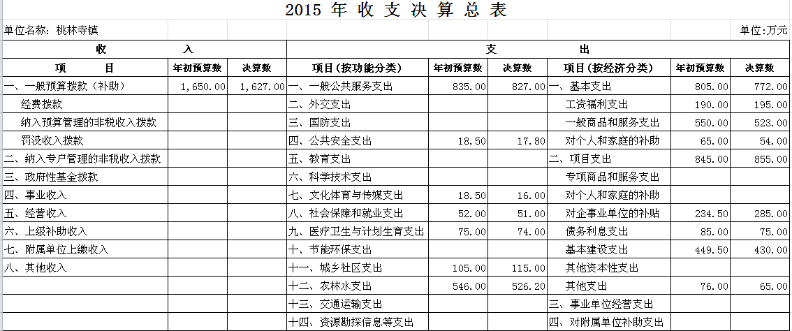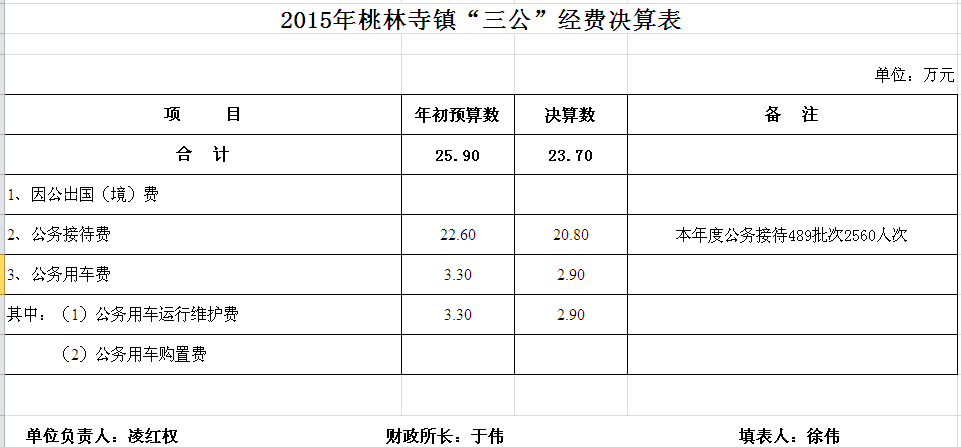 2015年桃林寺镇收支决算总表及“三公”经费决算表