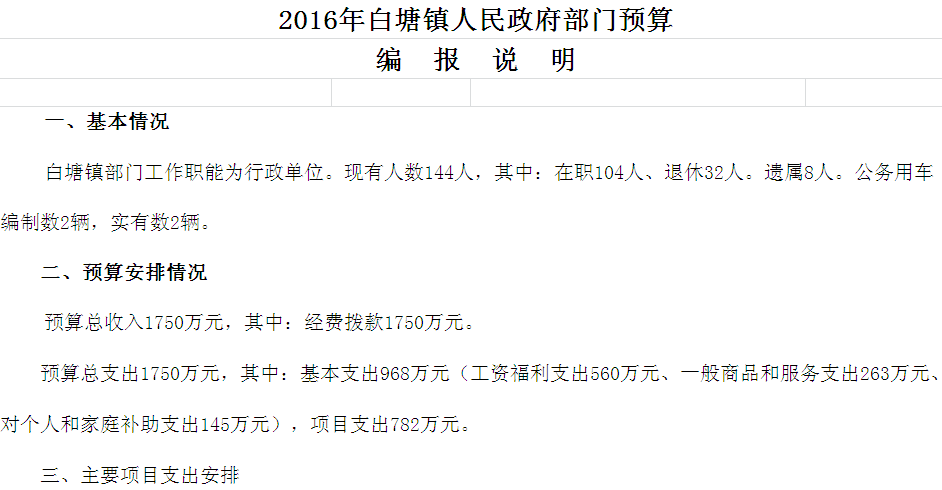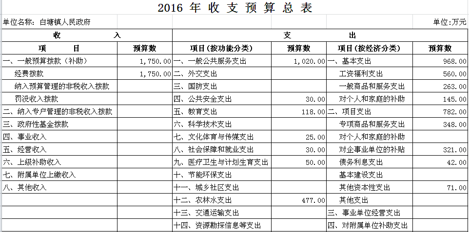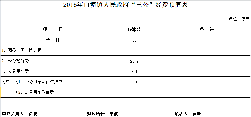 2016年白塘镇收支预算总表及“三公”经费预算表