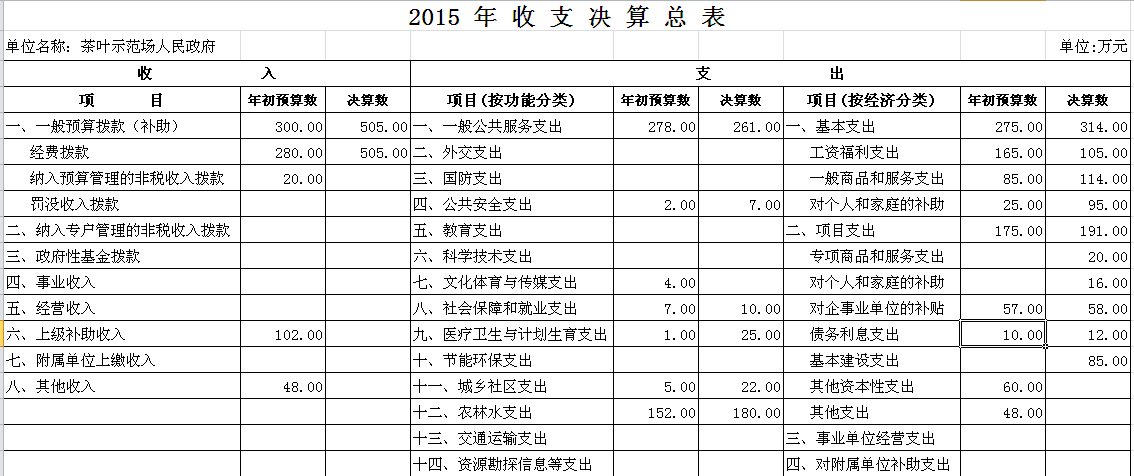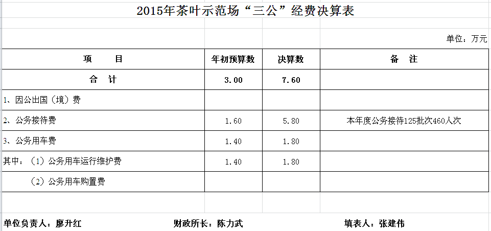 2015年茶叶示范场收支决算总表及“三公”经费决算表
