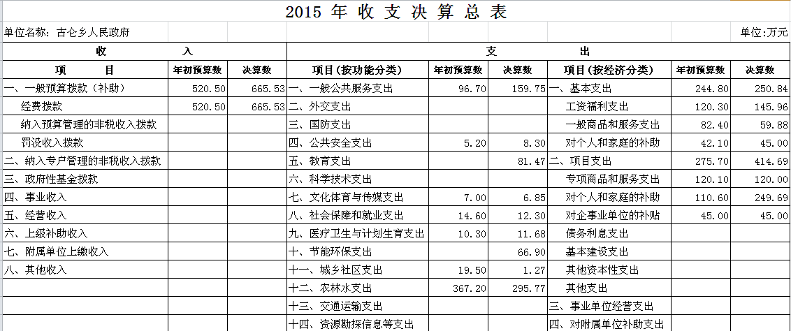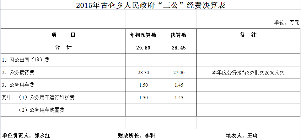 2015年古仑乡收支决算总表及“三公”经费决算表