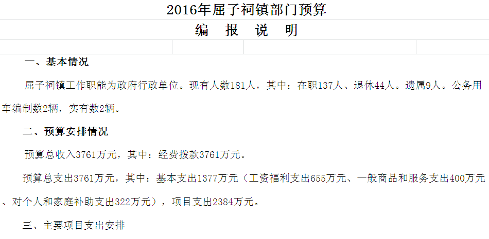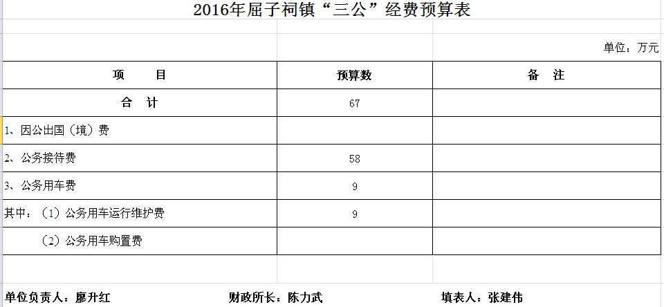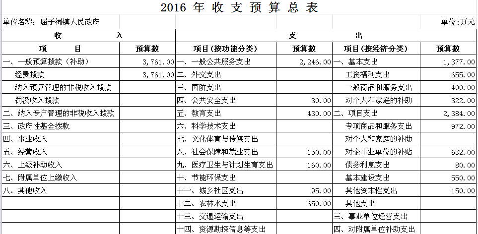 2016年屈子祠镇收支预算总表及“三公”经费预算表