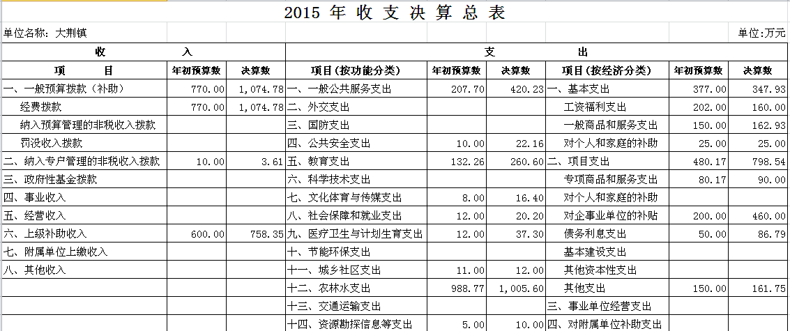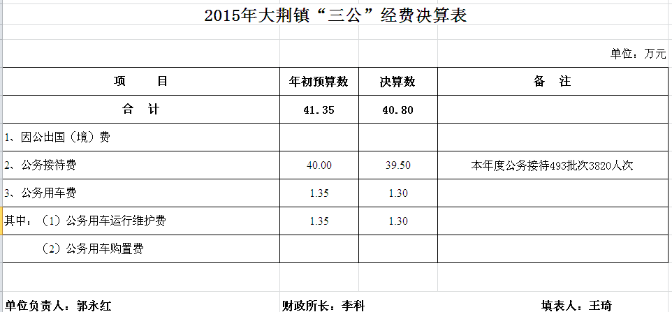 2015年大荆镇收支决算总表及“三公”经费决算表