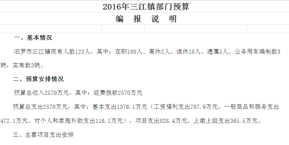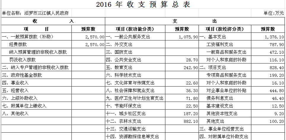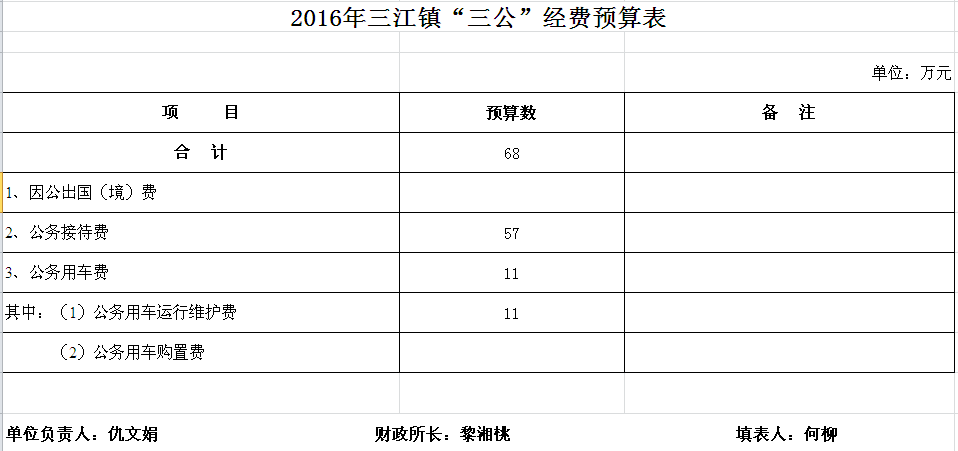 2016年三江镇收支预算总表及“三公”经费预算表