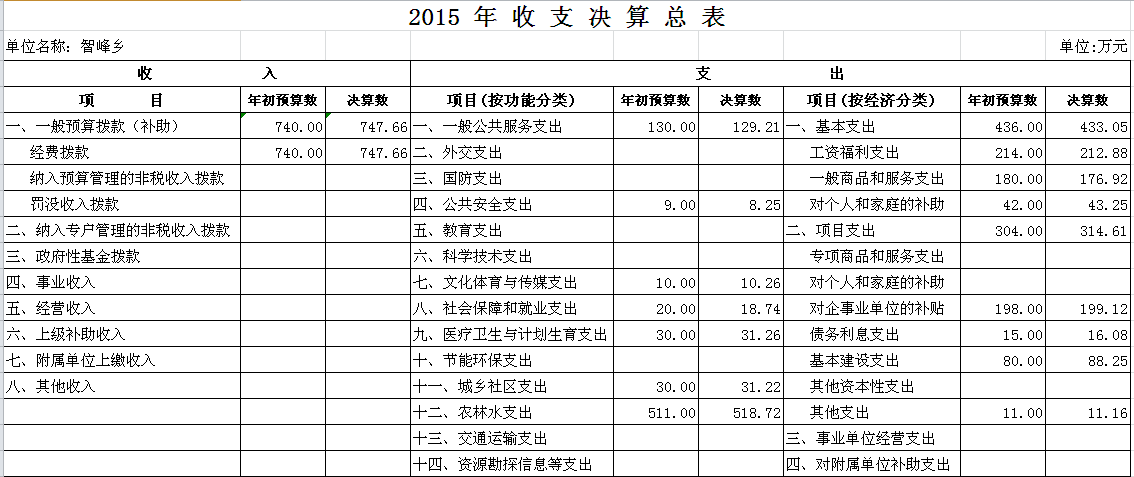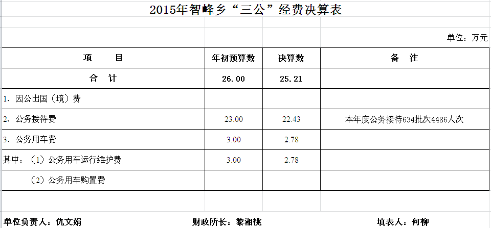 2015年智峰乡收支决算总表及“三公”经费决算表