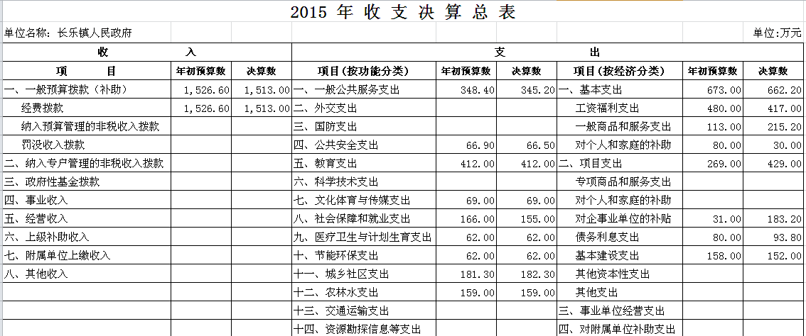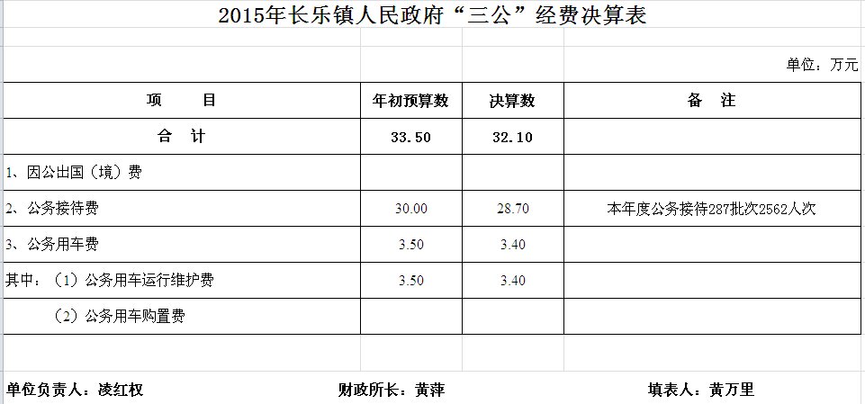 2015年长乐镇收支决算总表及“三公”经费决算表