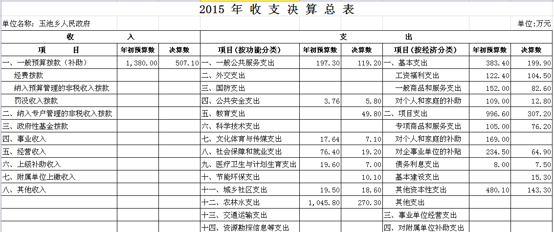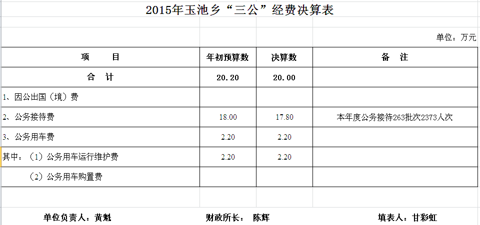 2015年玉池乡收支决算总表及“三公”经费决算表