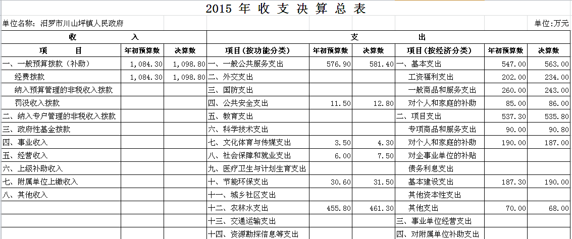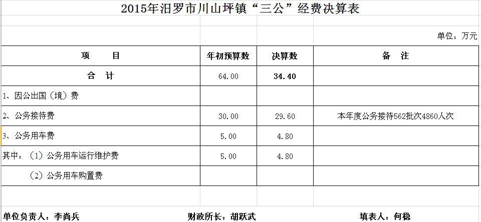 2015年川山坪镇收支决算总表及“三公”经费决算表