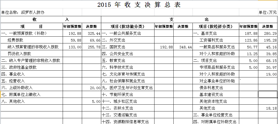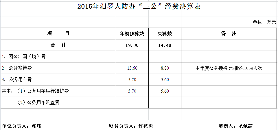 2015年市人防办决算总表及“三公”经费决算表