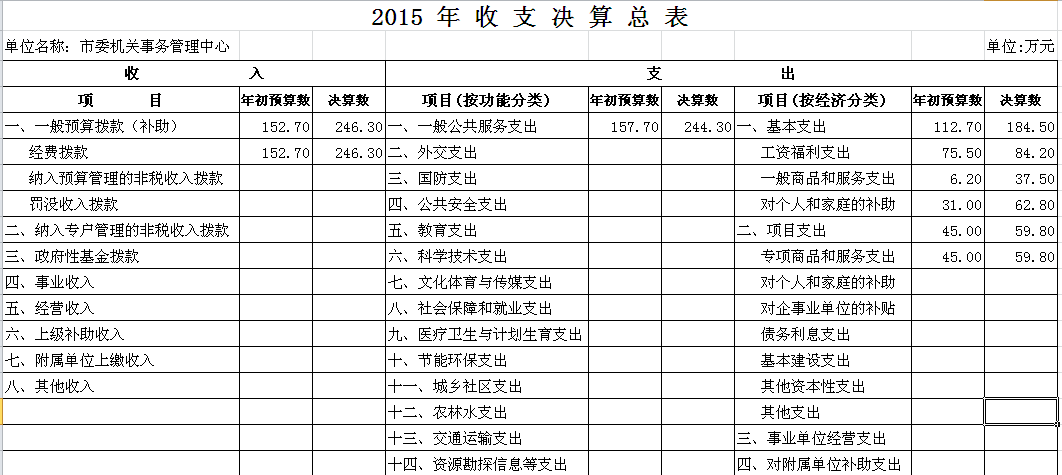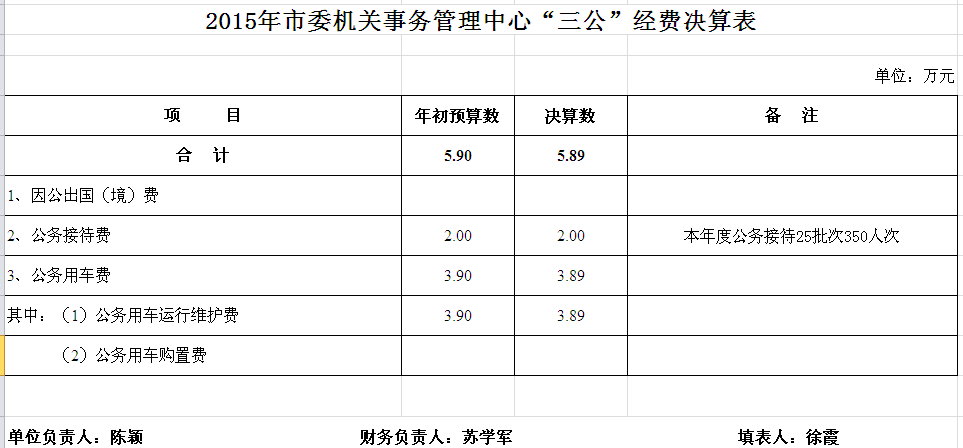 2015年市委机关事务管理中心收支决算总表及“三公”经费决算表