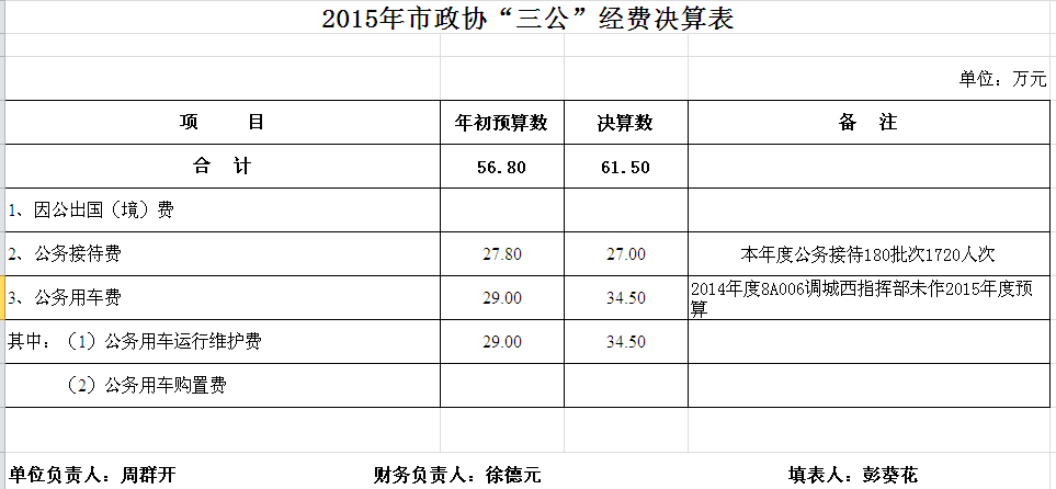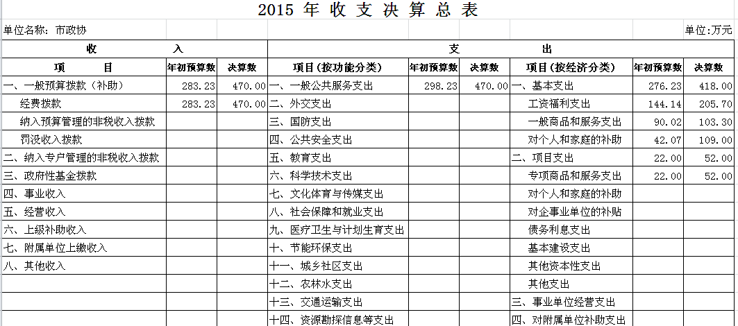 2015年市政协收支决算总表及“三公”经费决算表