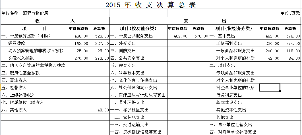 2015年市物价局收支决算总表及“三公”经费决算表