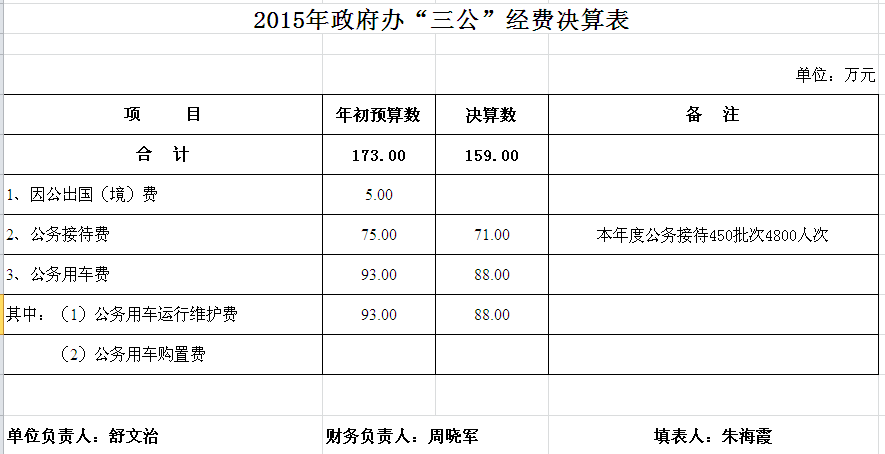2015年政府办收支决算总表及“三公”经费决算表