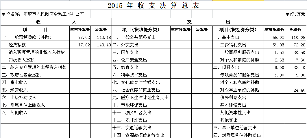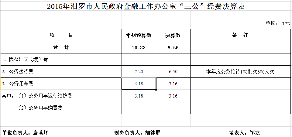 2015年市金融办收支决算总表及“三公”经费决算表