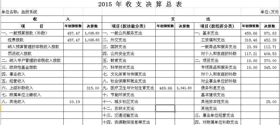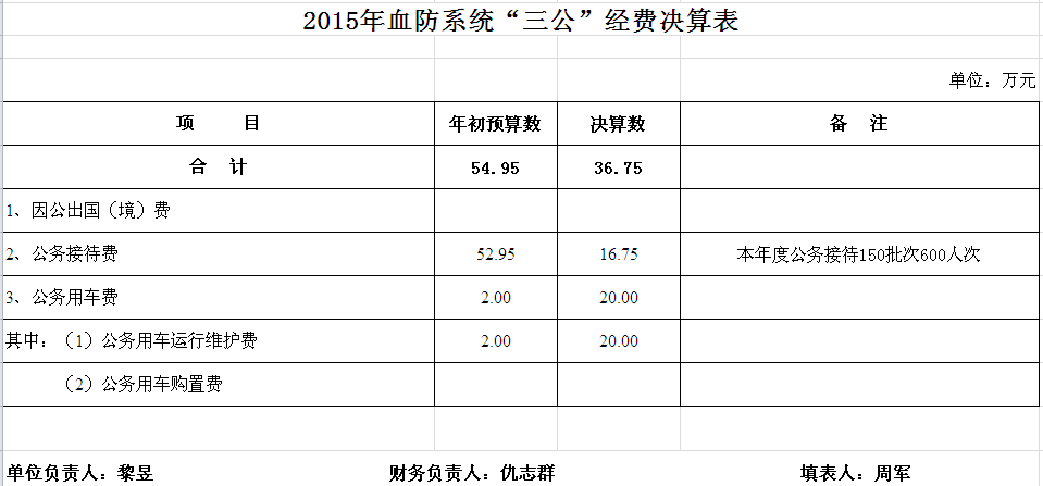 2015年血防系统收支决算总表及“三公”经费决算表