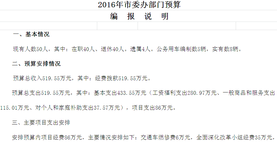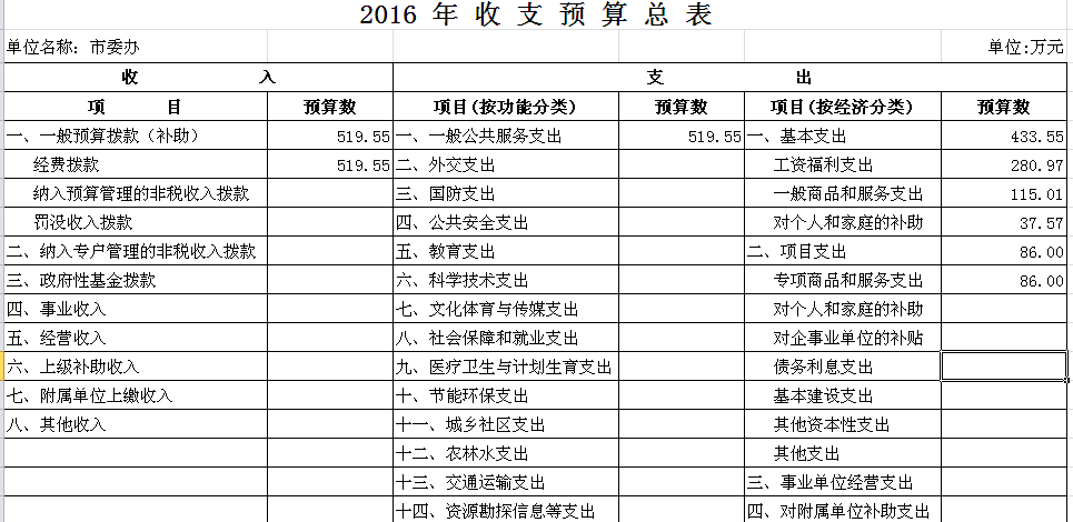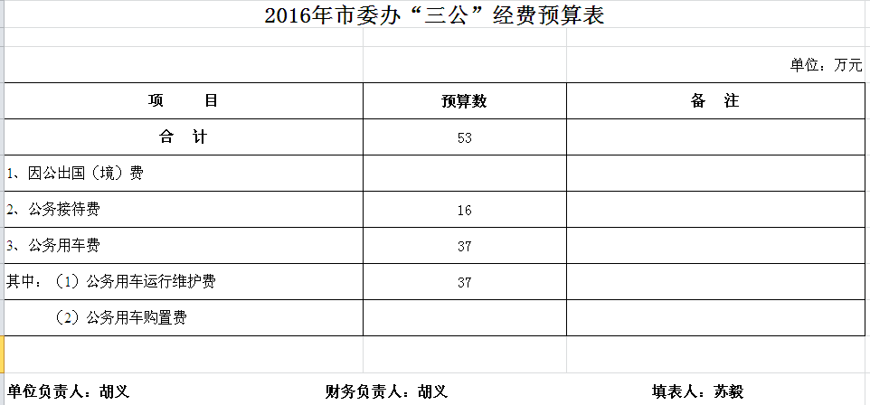 2016年市委办收支预算总表及“三公”经费预算表