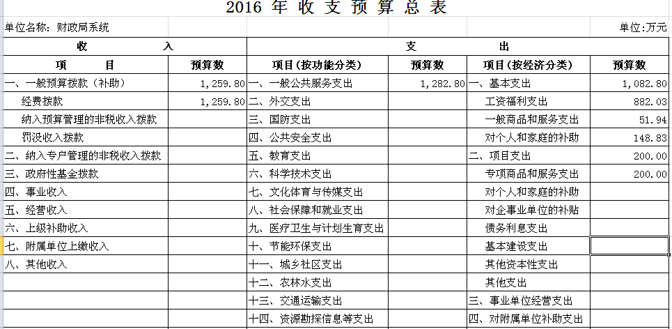 2016年市财政局系统收支预算总表及“三公”经费预算表
