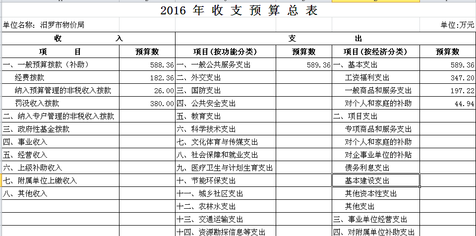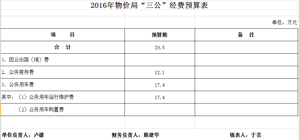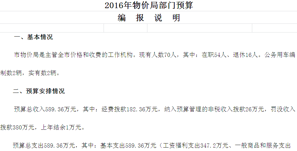 2016年市物价局收支预算总表及“三公”经费预算表