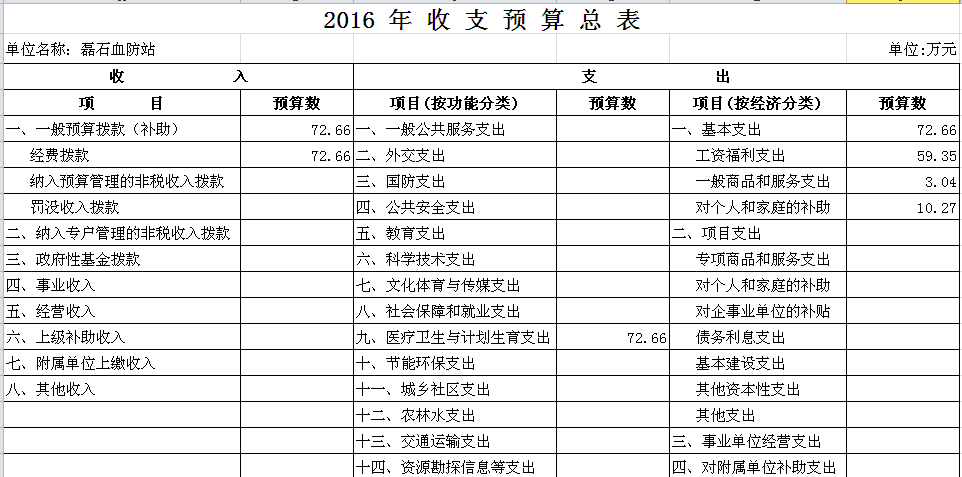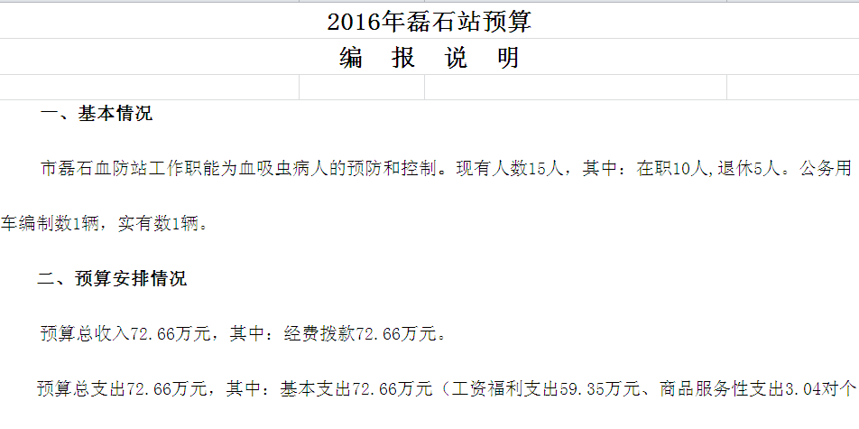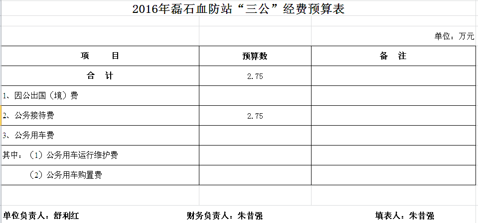 2016年磊石血防站收支预算总表及“三公”经费预算表