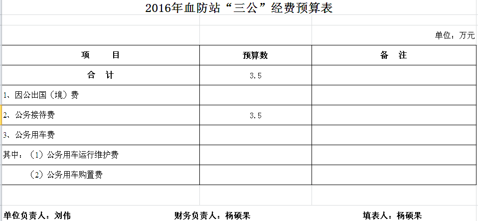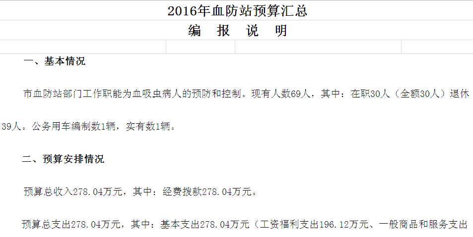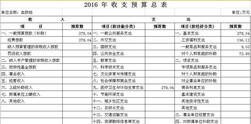 2016年城关血防站收支预算总表及“三公”经费预算表
