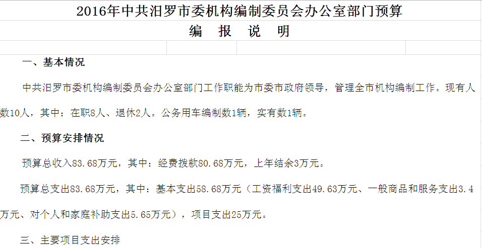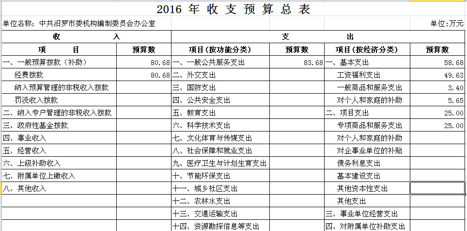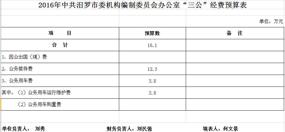 2016年市编办收支预算总表及“三公”经费预算表