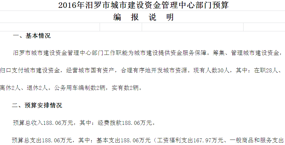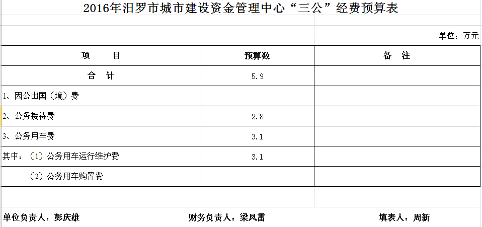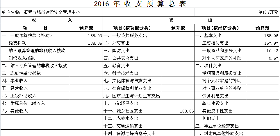 2016年城市建设资金管理中心收支预算总表及“三公”经费预算表
