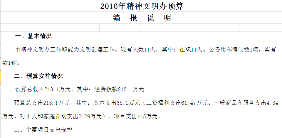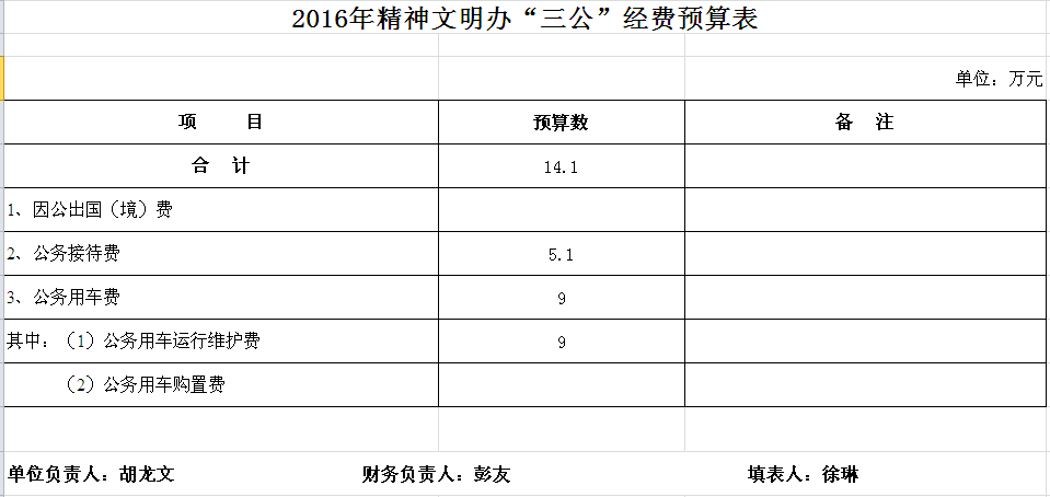 2016年市精神文明办收支预算总表及“三公”经费预算表