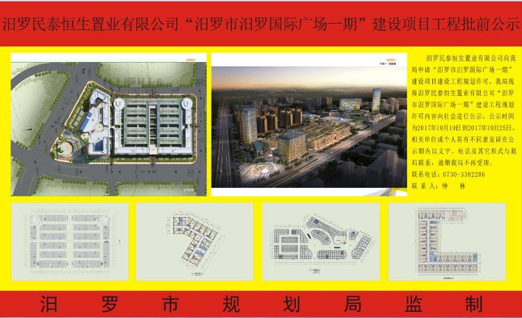 汨罗民泰恒生置业有限公司“汨罗市汨罗国际广场一期”建设项目工程批前公示