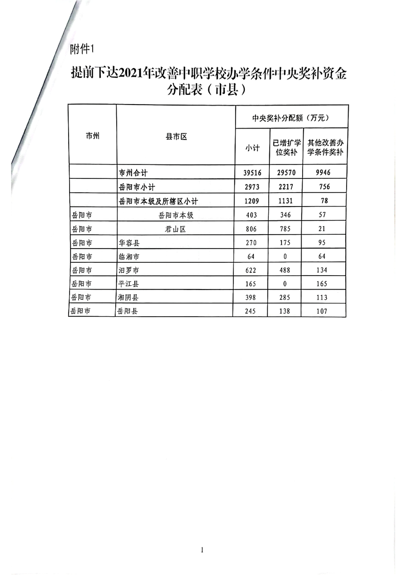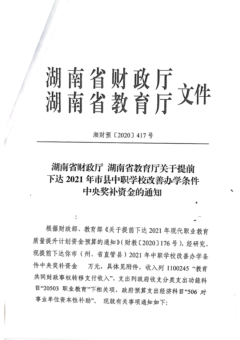 417号关于下达提前下达2021年市县中职学校改善办学条件中央奖补资金