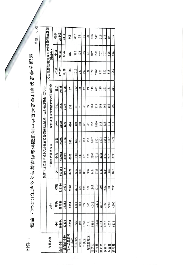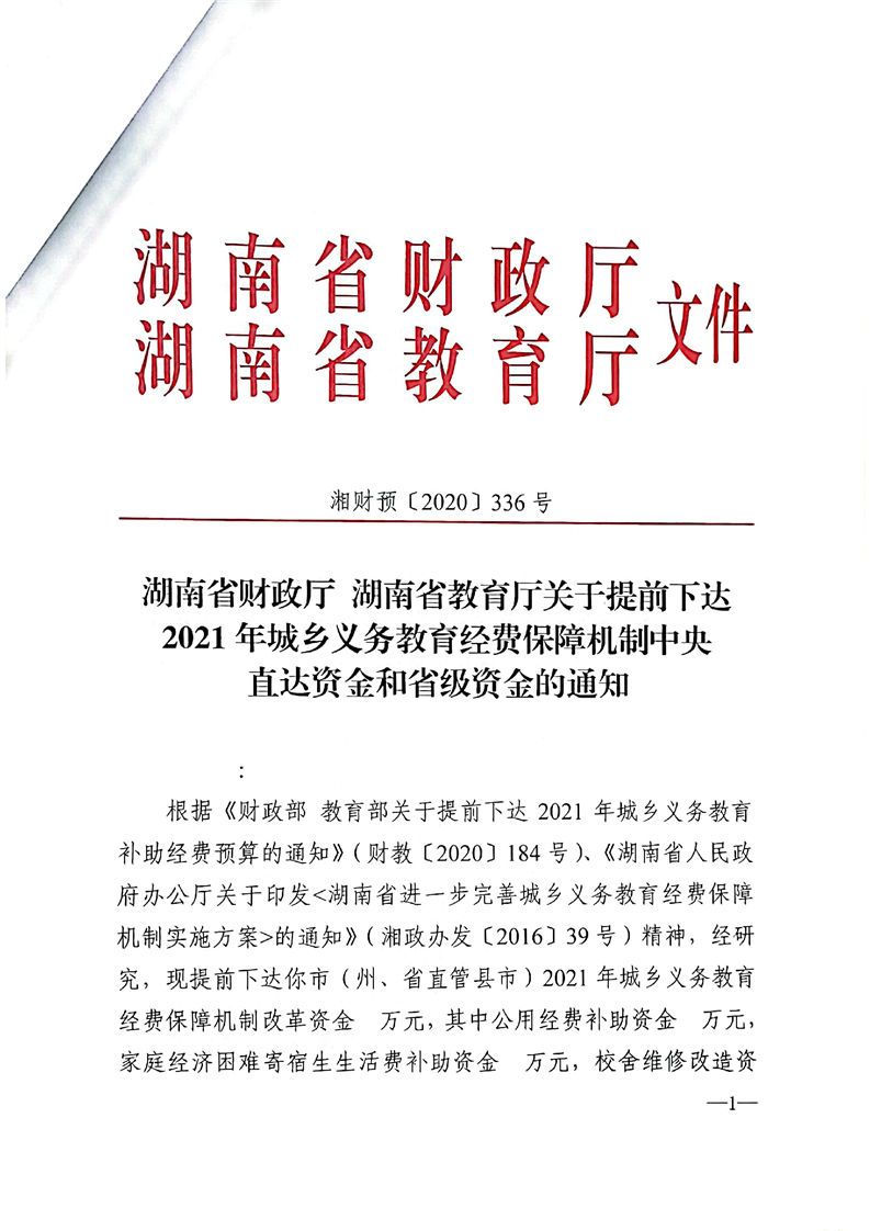 336号关于下达提前下达2021年城乡义务教育经费保障机制中央直达资金和省级资金的通知