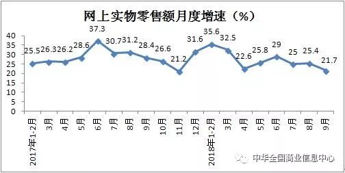 二、前三季度网上实物商品零售额增速累计增长27.7%,9月份增速较上月放缓3.7个百分点