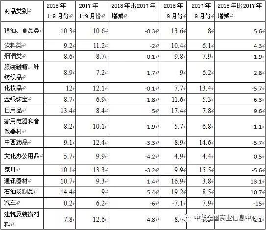 九、前三季度日用品和石油及制品增速涨幅超过5个百分点