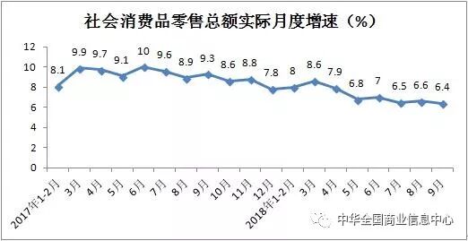从实际增速来看,前三季度累计增长7.4%,增速较1-8月份放缓0.1个百分点。其中9月份同比增长6.4%,增速不及上月。
