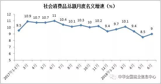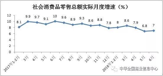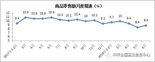 上半年,商品零售额实现160561亿元,同比增长9.3%,增速比2017年同期放缓1个百分点。其中6月份同比增长8.9%,增速较2017年同期放缓2个百分点。
