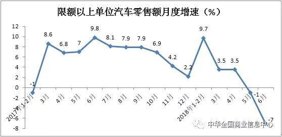 上半年,限额以上单位汽车类零售额同比增长2.7%,增速比2017年同期回落2.5个百分点,拉动社会消费品零售总额增长0.3个百分点,比2017年同期下降0.31个百分点。其中,5、6月份汽车分别同比下降1%和7%,对社会消费品零售总额增长的拉动率比2017年同期分别减少0.96和2.03个百分点