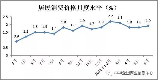 上半年,居民消费价格同比上涨2%,涨幅较2017年同期提高0.6个百分点。其中食品价格同比上涨1.2%,涨幅较2017年同期加快3.3个百分点;非食品价格同比上涨2.2%,涨幅较同期放缓0.1个百分点。消费品价格同比上涨1.5%,涨幅较同期提高0.9个百分点;服务价格同比上涨2.7%,涨幅较上年同期放缓0.2个百分点。